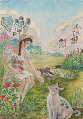 作品简介:本作品灵感源于国外农场主通过与感染弓形虫的猫科动物接触后并食用了被猫粪便所带卵囊污染的水和食物而感染的一则案例。通过表现美丽的乡村姑娘在蔬果园与流浪猫咪的互动,用含蓄的手法表现了弓形虫如何通过动物传染给人类。另外,输血、肿瘤病人等也会引起感染。