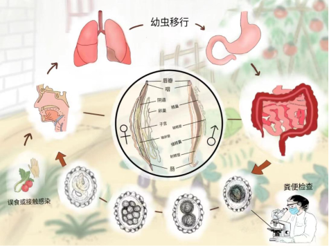 以此图来警示防治蛔虫感染应采取综合措施,通过健康教育来预防感染。