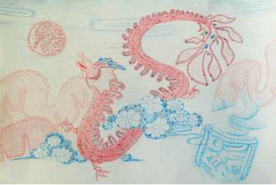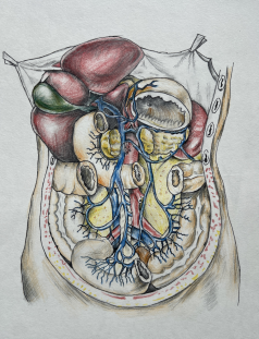 (手绘作品:《消化系统-腹部》、作者:23级临床医学专业 闫夏至、指导老师:华晓敏)