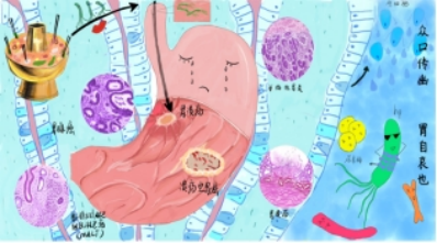 (机绘作品:《众口传幽,胃自哀也》、作者:21级临床医学专业 马文宇、指导老师:王成勤)