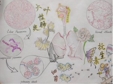 (手绘作品:《大叶性肺炎的病因与防治》、作者:21级临床医学专业 凌紫晨、指导老师:谭晓华)