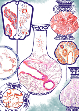(机绘作品:《不一样的青花瓷》、作者:23级临床医学专业 蔡竺筱、指导老师:王倩)