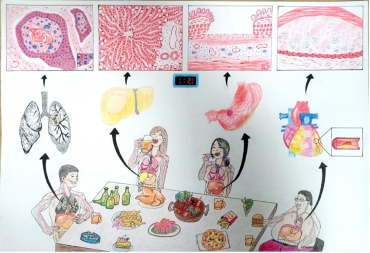 (手绘作品:《不良生活习惯的危害》、作者:21级临床医学专业 孟露露、指导老师:王宁)