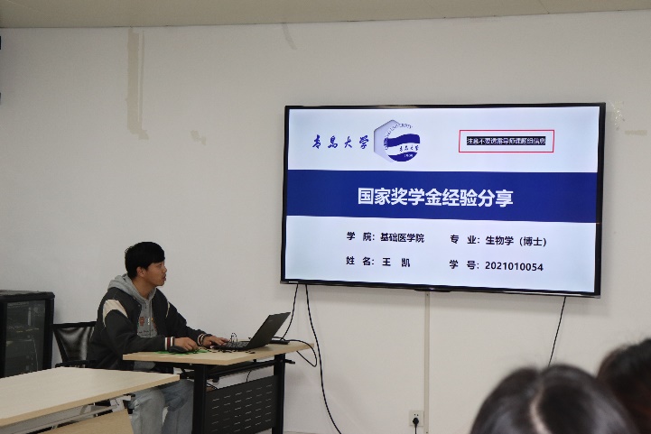 于医学综合楼B810会议室举办“研途有光,解锁国奖”研究生国奖经验分享交流会,本次活动邀请到我院2024年研究生国家奖学金获得者孙金秋、王凯、陈鑫哲、李佳文、苗龙宇五位同学分享学习、科研经验和感悟。除线下参加的30名同学外,本次活动还开通了线上的参会渠道。