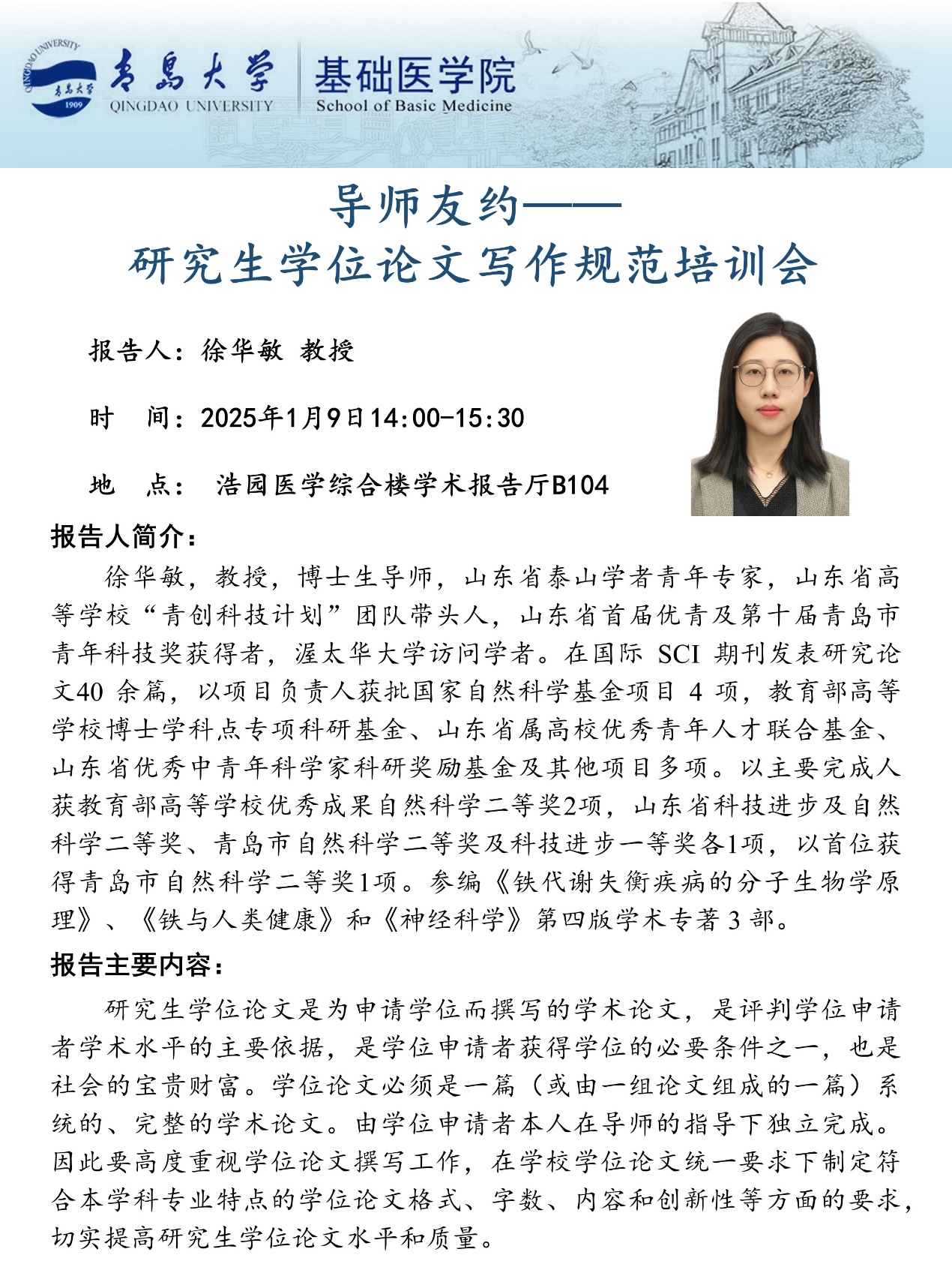 院长助理徐华敏教授做了《研究生学位论文写作规范培训》专题培训。6686体育官网