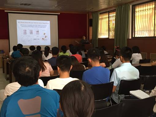 此次学术报告,周教授为大家介绍了其课题组最新的研究进展和研究经验。近年来他们主要研究了Hippo等信号通路调控肿瘤发生及免疫应答的机制与功能,并取得了一系列重要突破。他们发现了多个可用于胃癌、结肠癌等恶性肿瘤以及感染性疾病的诊断标记物和潜在药物。报告结束后,多位老师和同学积极进行提问、交流和讨论。整个会议学术氛围良好。