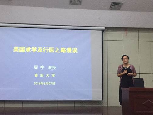 67日晚,由6686体育官网 生理教研室博士生导师、山东省泰山学者特聘教授周宇主讲的“美国求学及行医之路漫谈”讲座在浮山校区图书馆报告厅举行,医学部临床医学专业的学生聆听了本次讲座。
