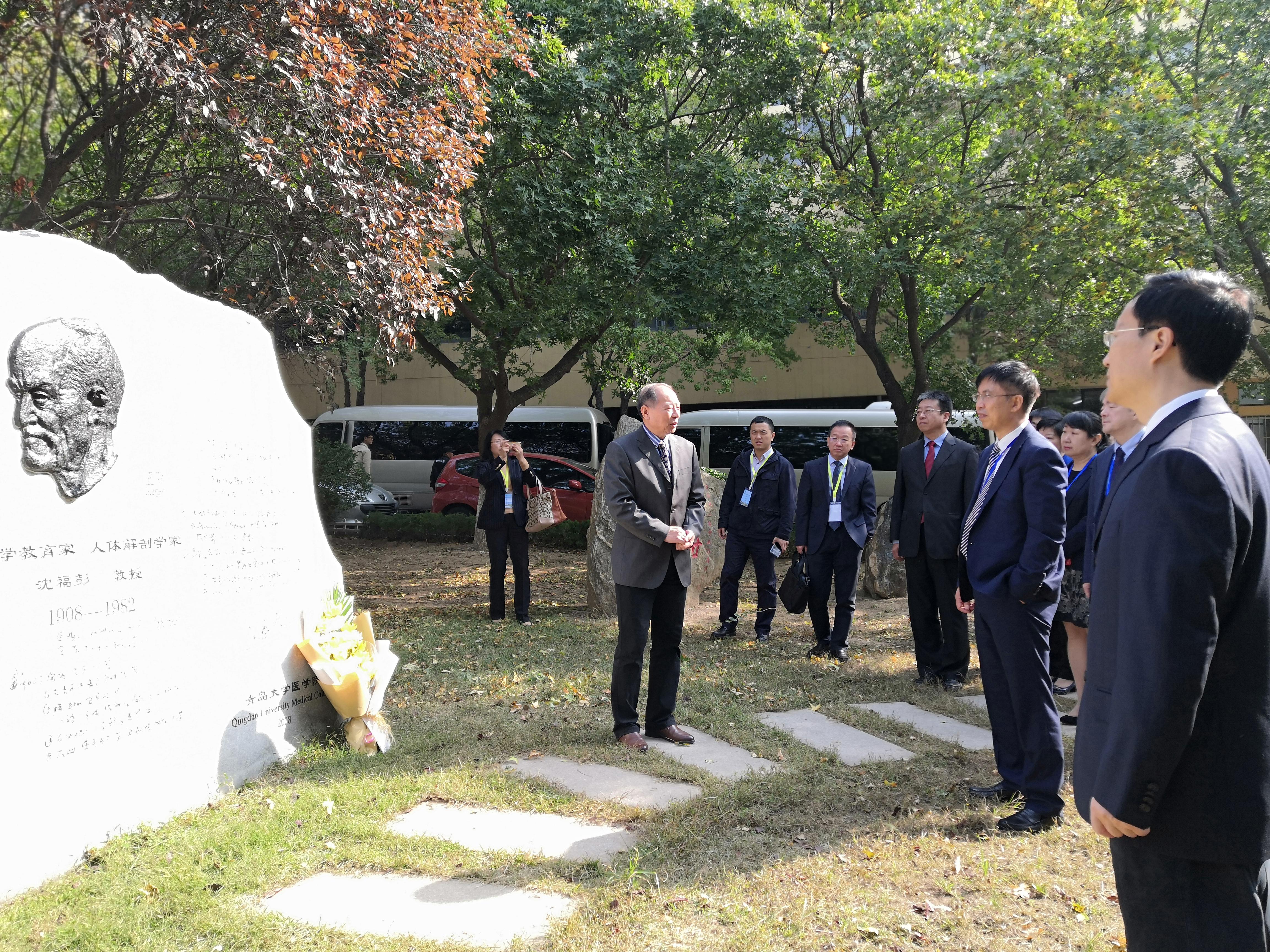 10月28日上午,学校汇报会结束后,专家组一行在校党委常委、副校长于永明、孔伟金的陪同下,瞻仰了沈福彭教授的纪念雕像和人体骨架,6686体育官网