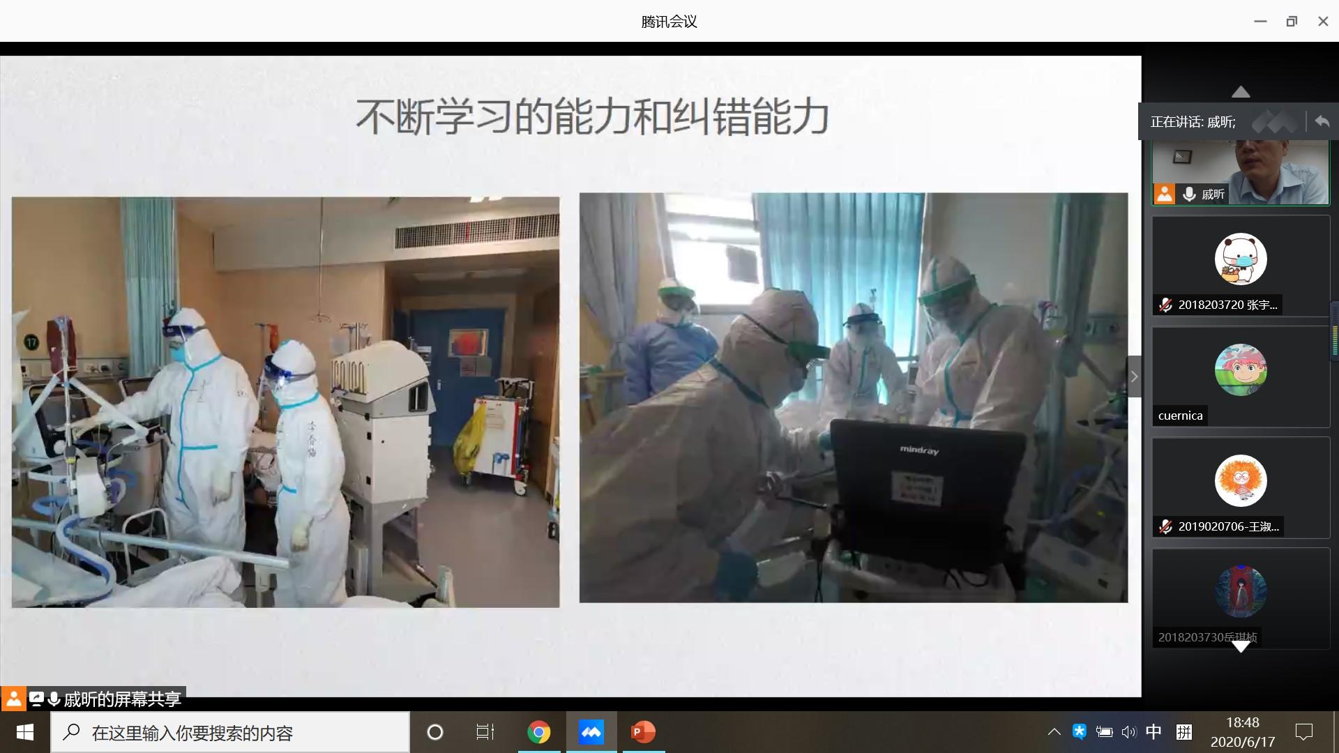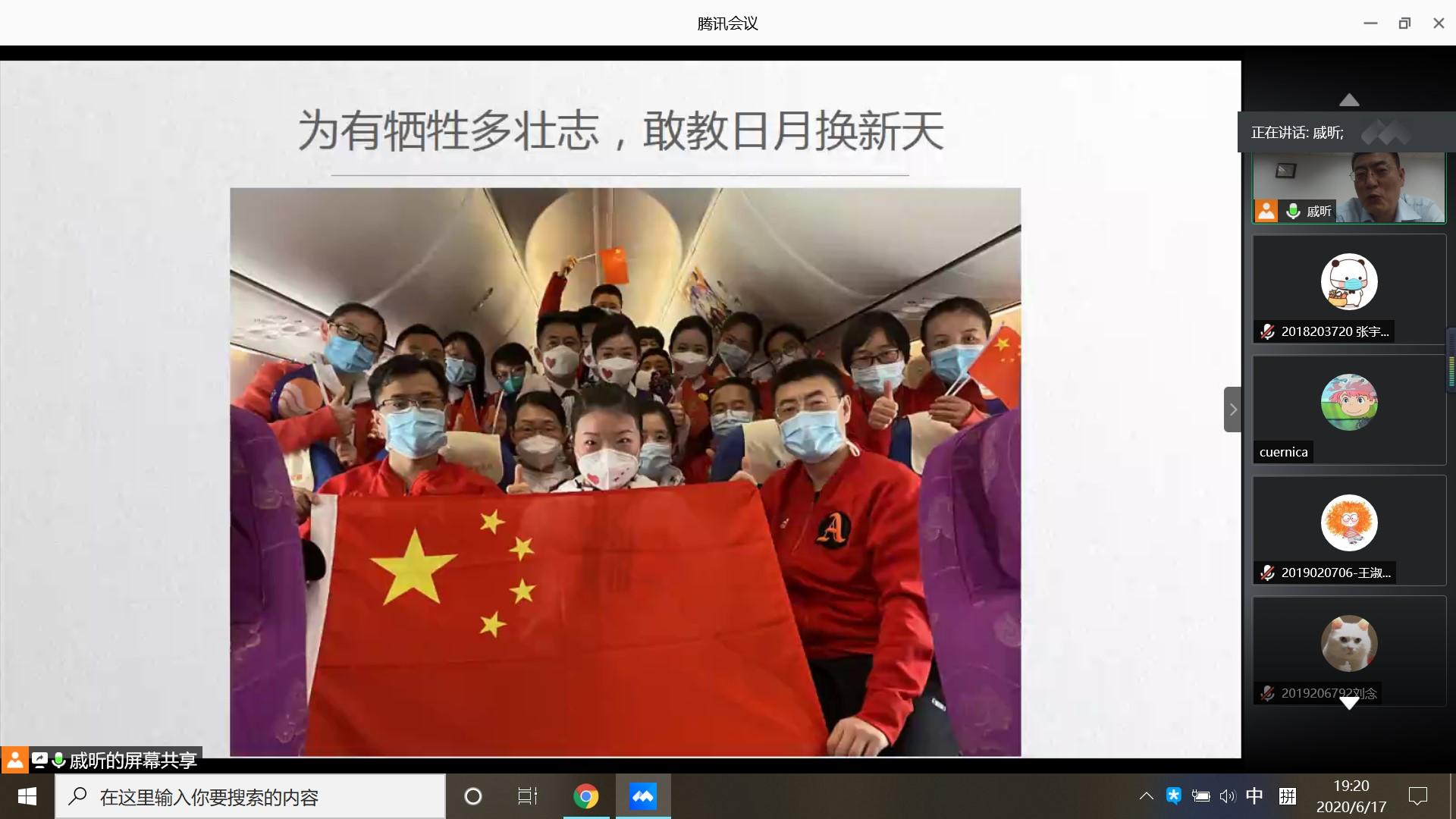 报告会精彩落幕,广大同学在腾讯会议平台纷纷留言,表达了对医护人员的敬意,也表示在今后的岁月里不忘从医初心、弘扬抗疫精神、践行医学使命。