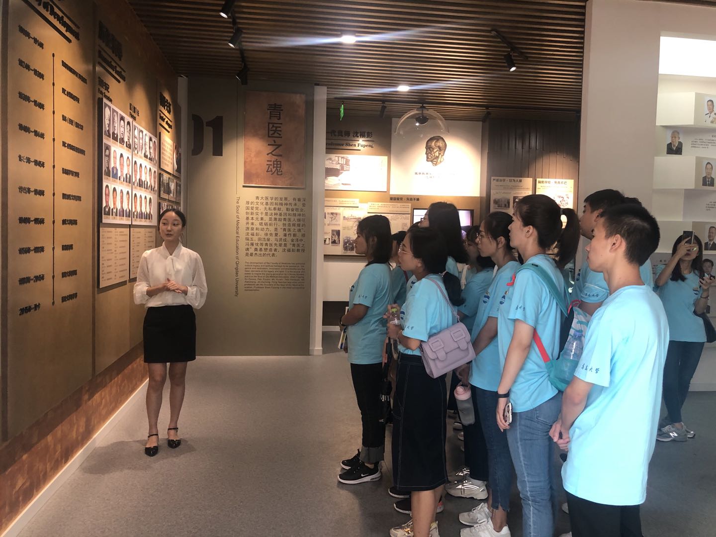 学生志愿者、2019级临床医学专业的解文阳担任本次医学发展史馆的讲解员,她说“很荣幸能够成为讲解院史馆的学生志愿者,从最初的了解史馆,准备稿子,再到熟练至给到访的领导以及同学们实地讲解.....自己都收获颇丰。通过讲解史馆,自己充分了解了青大医学的历史沿革,更深层次的感受了青大医学发展中的风雨兼程;通过对沈福彭教授等诸多名师的了解也更深刻的体会到了作为一名医学生应该承担起的重任。‘也许我们选择学医是偶然,可一旦选择了,就必须用一生的忠诚和热情去对待它’。这次宝贵的志愿经历不仅锻炼了我的个人能力,同时也为自己积累了丰富的社会经验,相信这一定会在我的成长过程中留下深刻的记忆。”