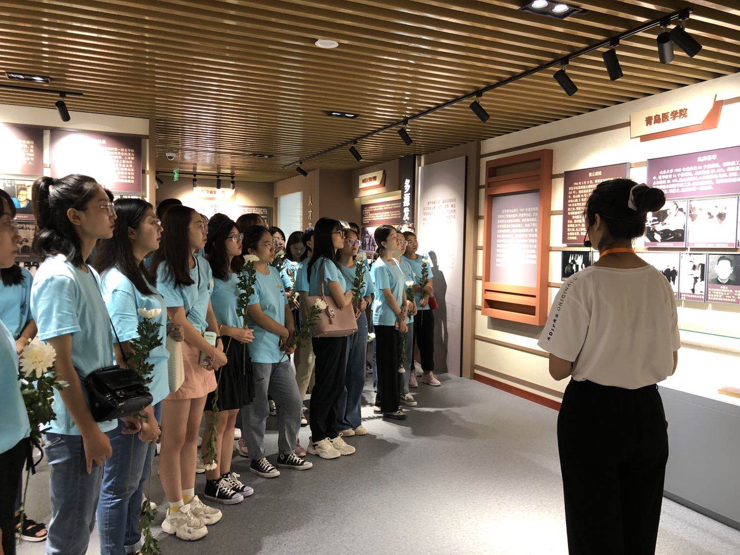 2020级硕士二班研究生共同上一堂课,分别在青岛大学校史馆、沈福彭石碑、医学发展史馆和人体生命科学馆进行现场学习参观。直播期间,陆续播放了《家国梦相连》青岛大学办学110周年宣传片、医学部宣传片、欢迎回家宣传片、青大附院援汉医疗队纪实MV等。