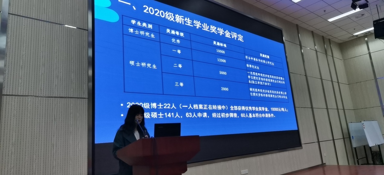 在医学教育综合楼一楼学术报告厅举行2020年研究生优秀学业奖学金评审会议。会议由研究生辅导员谭雪梅老师主持,6686体育官网