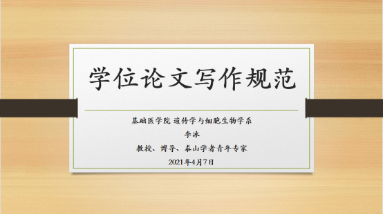 为切实提高研究生学位论文的写作能力,保证学位论文的质量,我院4月7日下午在医学教育综合楼学术报告厅举办“研究生学位论文写作规范培训会”,特邀医学部部长助理、遗传学学科负责人、山东省优秀研究生论文指导教师李冰教授做了《学位论文写作规范》的报告,2021年应届博士和硕士毕业生共计179人通过线上线下的方式参会。会议由6686体育官网
