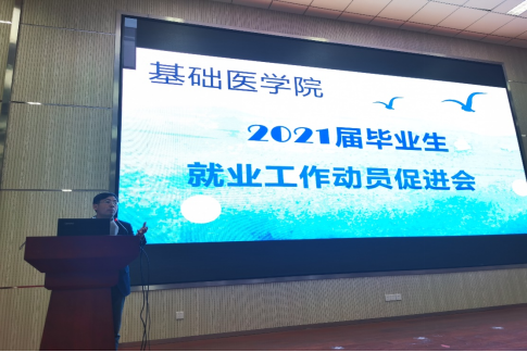 在医学教育综合楼会议厅召开2021届毕业生就业工作动员促进会, 2021届全体毕业生通过线上线下参加会议。6686体育