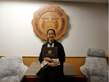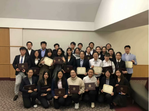 2017级华大班获美国密苏里州立大学结业证书与班主任胡明老师合影