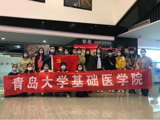 教工第二党支部和共建的学生联合支部部分党员,于青岛大商影城集体观看红色主题电影《长津湖》和爱国电影《我和我的父辈》。