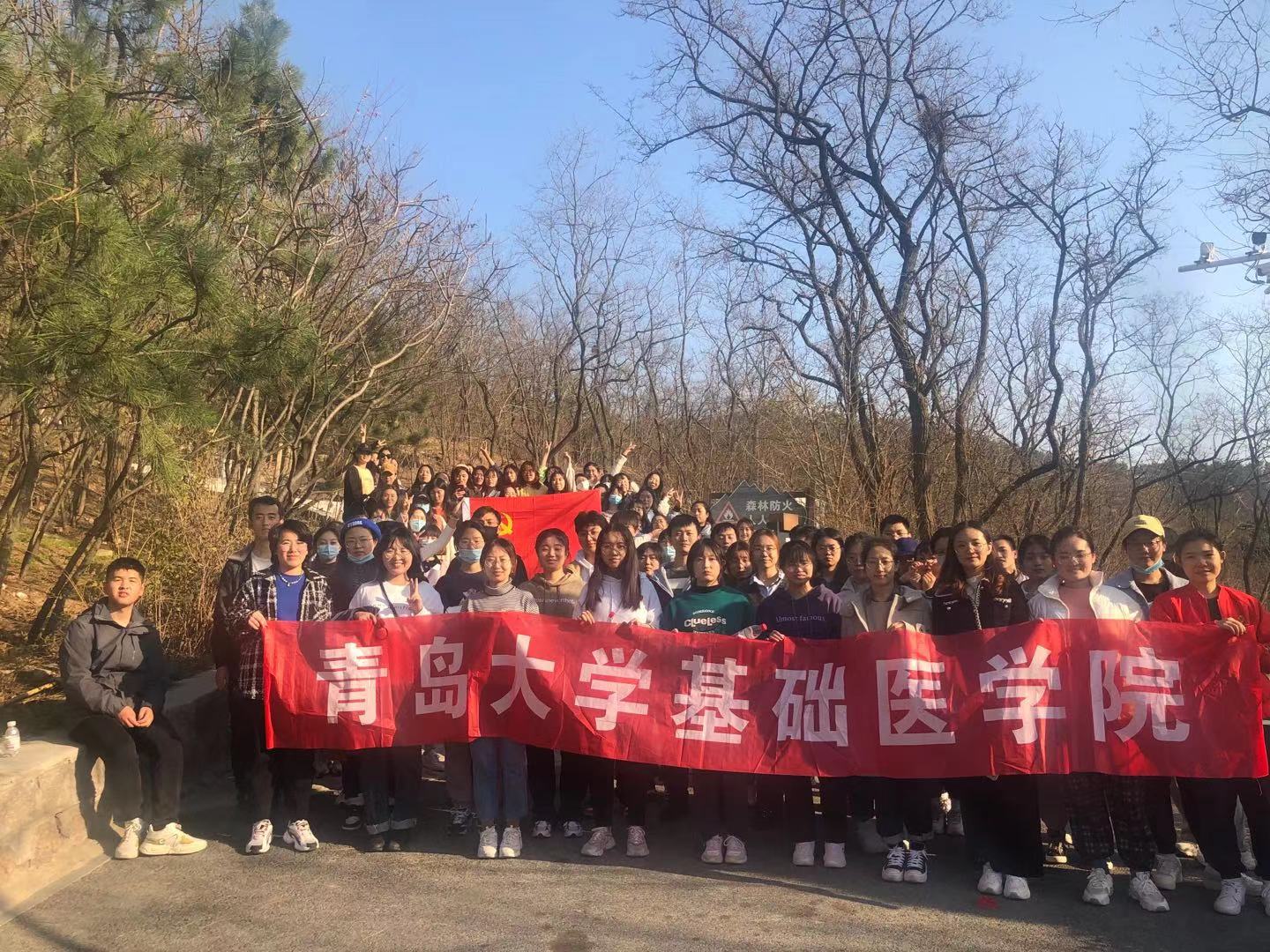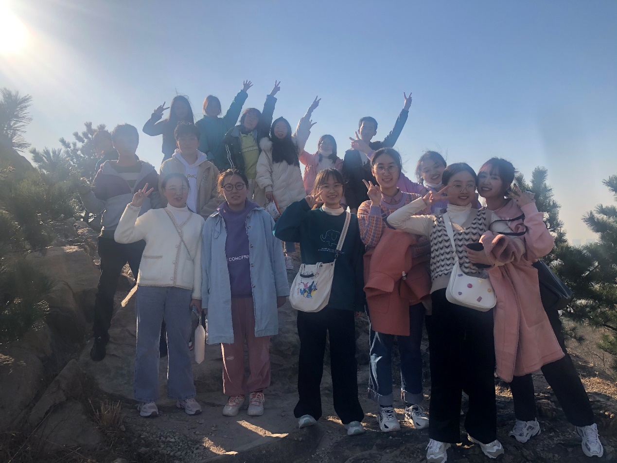 一路上师生们一边欣赏美景,一边在保持安全距离的前提下相互交流、彼此问候,感受大自然的纯净、隽永和秀美,放松身心,心情愉悦地向山顶行进。师生交流沟通,携手互助,把往日的学习、科研和工作压力释放殆尽,一起奋勇攀登。最后大家在欢声笑语中一起合影留念。