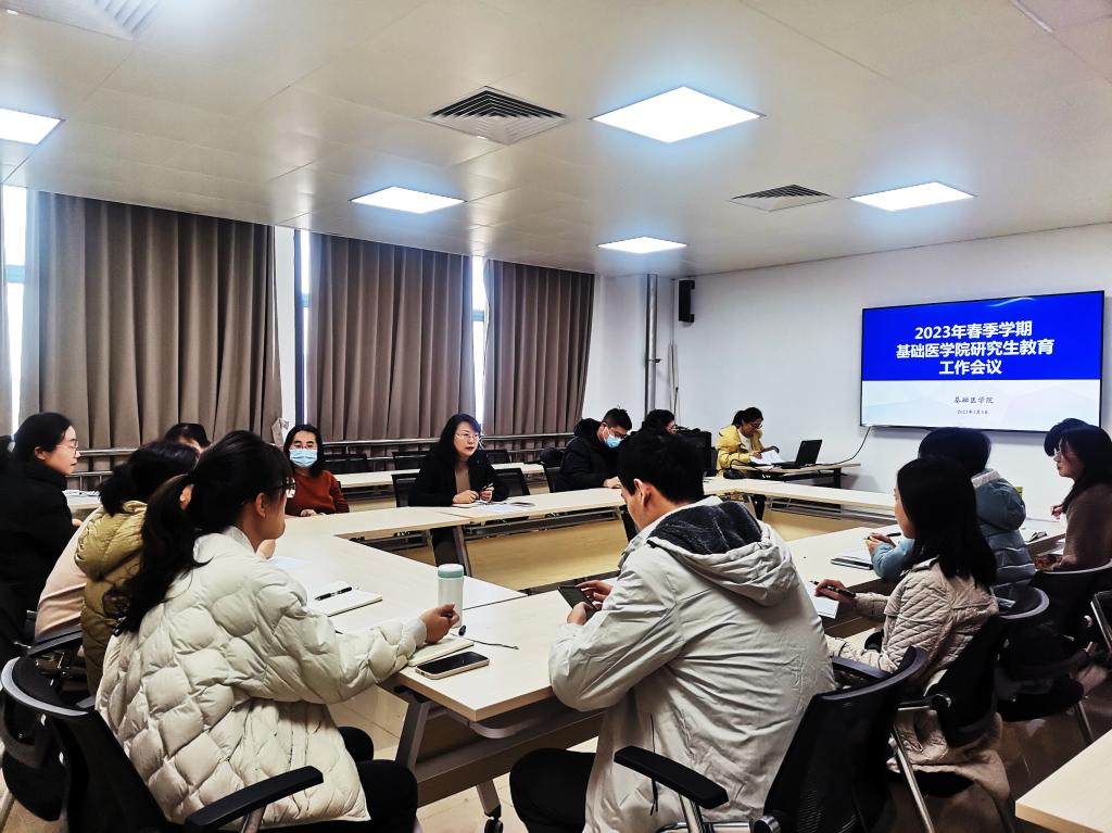 在浩园医学综合楼B810召开了2023年春季学期学科秘书工作会议。基础医学、生物学、特种医学三个博士一级学科秘书和硕士一级、二级学科秘书、教科办相关老师参加会议,会议由副院长陈文芳主持。