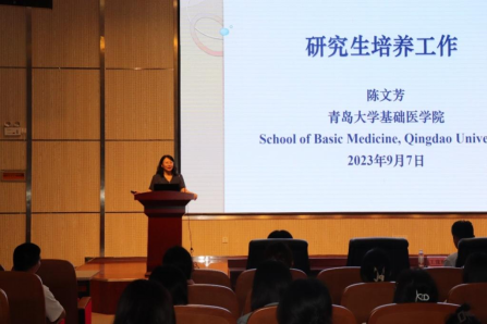 陈文芳副院长解读了研究生培养工作各个环节的要求,对导师双选、研究生培养方案和课程选择、开题要求以及学位申请基本学术条件等进行了详细的说明。