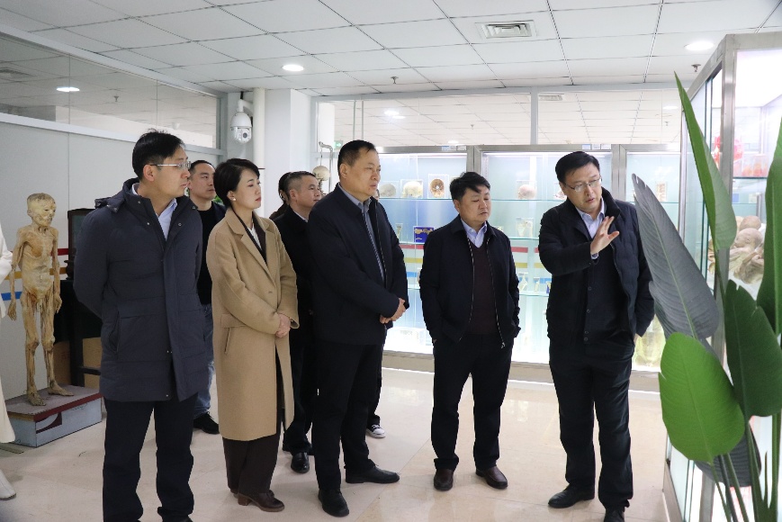 省卫健委一行还亲临现场考察,先后参观了解剖学实验室、标本陈列馆及系问乐解人体形态学研习室。在参观过程中,他们认真听取了沈主任关于遗体捐献工作及相关教学设施、资源运用等方面的介绍,对中心各项工作有了更直观、深入的认识。此外,省卫健委一行还仔细检查了中心的相关文件与档案材料,全面了解工作细节与管理规范。
