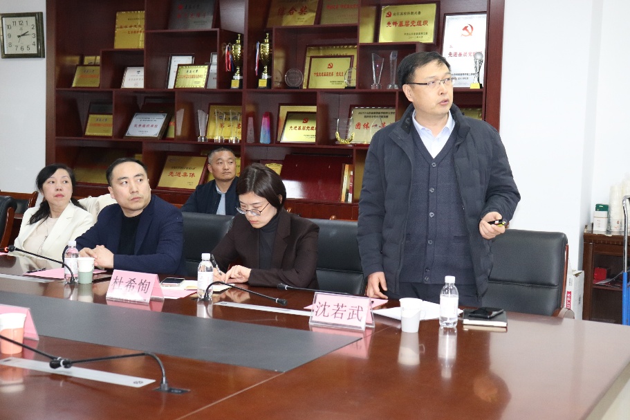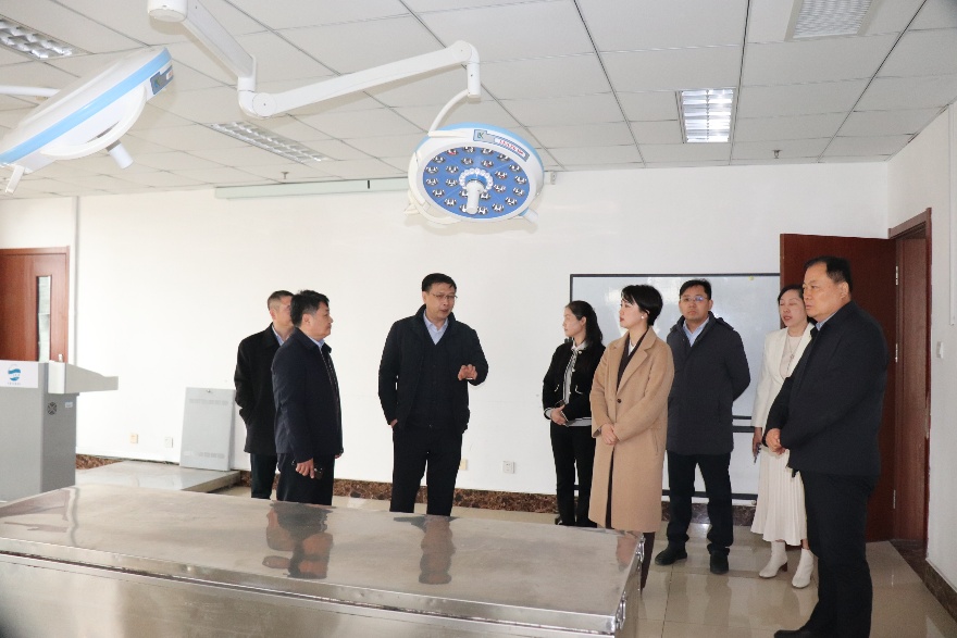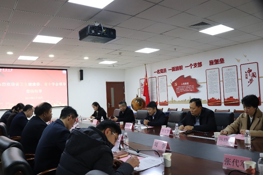 院长张蓓主持会议。李荣贵副校长首先对莅临指导工作的省、市卫健委及红十字会领导表示热烈欢迎及诚挚感谢。青岛大学与城市共生,医学教育历史悠久且优势显著。我校遗体捐献接收工作在多方监督指导下依规开展,青岛市第一位遗体捐献者正是青岛大学人体解剖学的学科创始人沈福彭先生。此次领导现场调研,将促使我校进一步规范流程、提升服务,后续也将与领导、专家深入交流,推动工作向规范化、专业化迈进,助力医学教育事业发展。