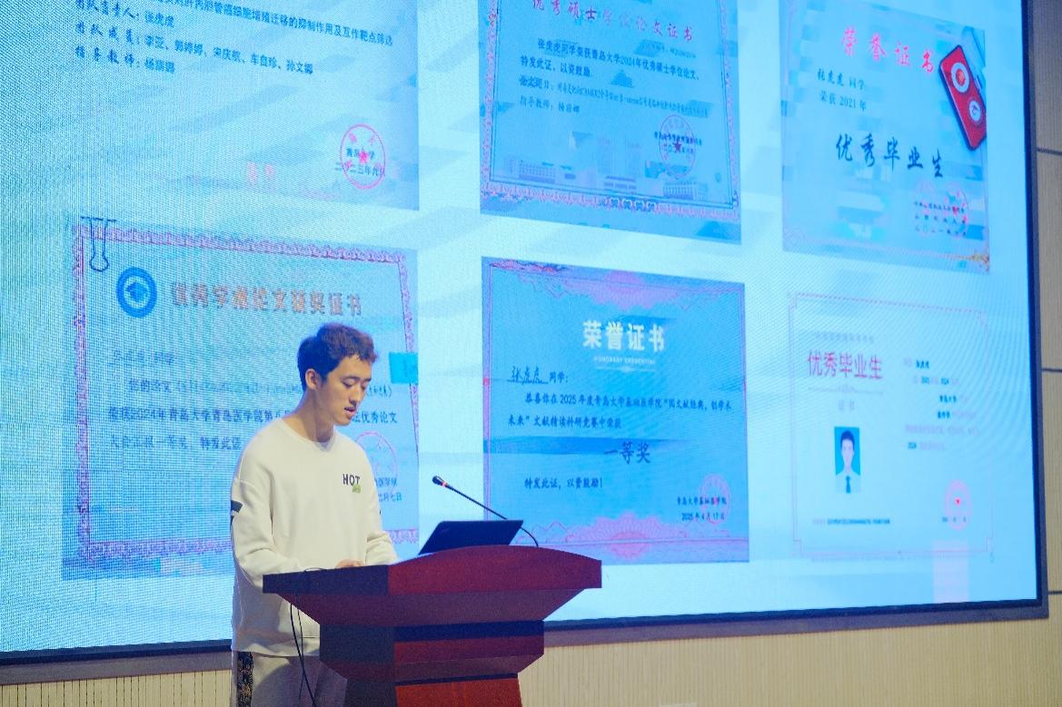 优秀学生代表张虎虎同学结合自身科研与成长经历,以“守护初心、勤勉治学、勇于创新、全面发展”为主题,分享心得体会。他鼓励新生保持对学术的热爱,夯实专业基础,敢于突破定式、探索创新,积极投身实践与服务,并寄语大家“以初心为舵,以勤勉为帆”,在科研道路上坚定前行、超越自我。
