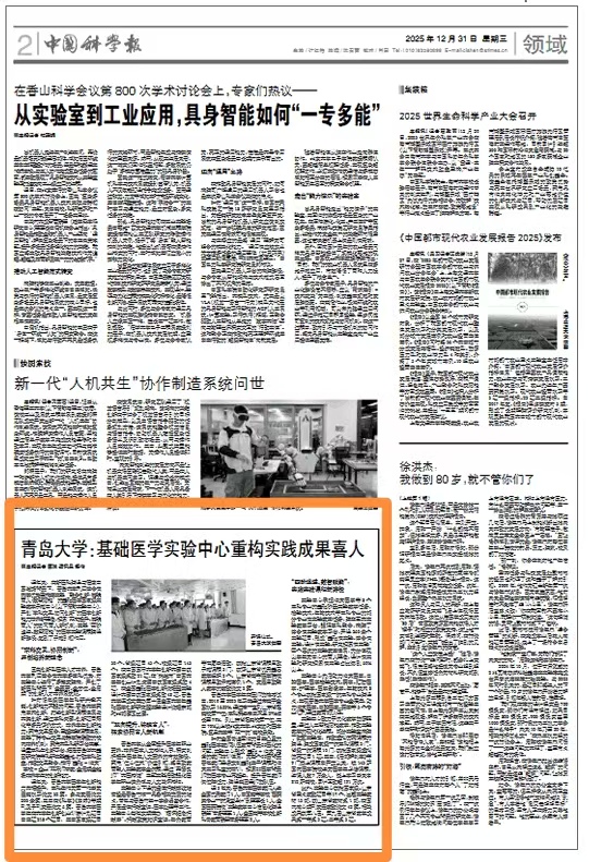12月31日《中国科学报》以“青岛大学:基础医学实验中心重构实践成果喜人” 为题对6686体育-6686体育app-6686体育官网