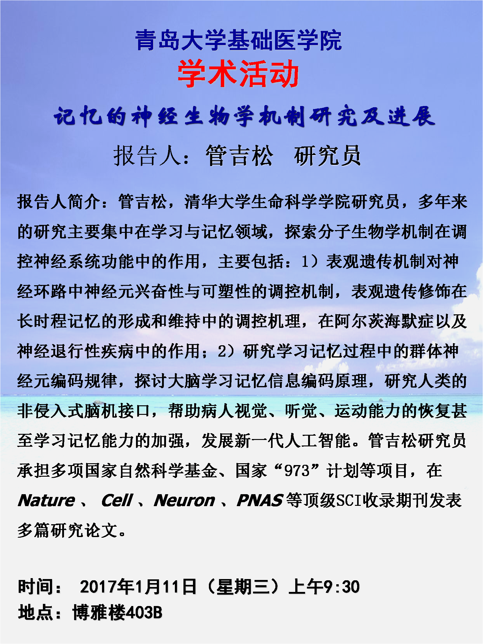 讲座时间:2017年1月11日9:30