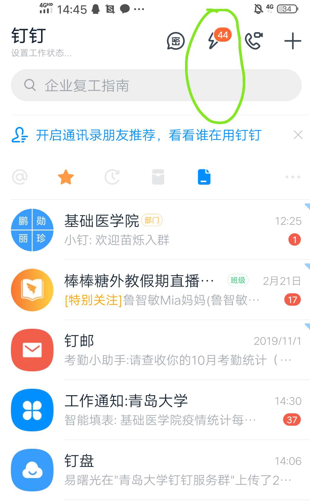 1、每天上午9点开始,点击软件DING消息(闪电符号)