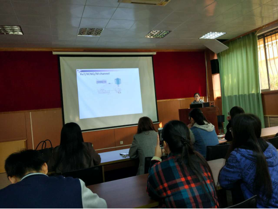 师生作精彩学术报告,题目为“The electrophysiological modulation of ghrelin on nigral dopaminergic neurons”。石丽敏博士主要运用电生理、电化学、动物行为学等方法从事神经肽类物质ghrelin对黑质多巴胺能神经元电活动的调控。目前承担国家自然科学基金面上项目及青年项目各一项,在Nature Communications发表SCI论文1篇。