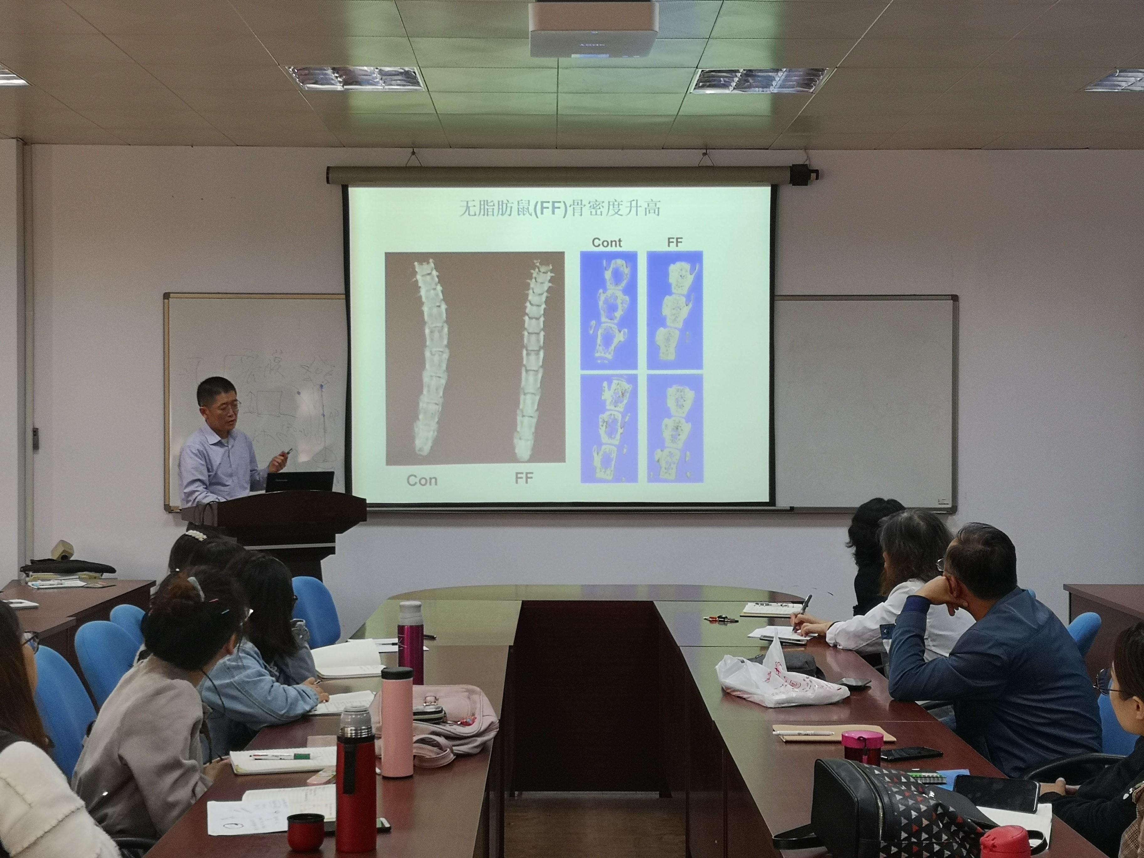 此次学术报告的主题为“Fat Talks to Bone”,邹博士针对脂肪组织与破骨细胞的关系为我们进行了详细的介绍。报告结束后,多位老师和同学就自己对报告的疑问进行提问、交流和讨论,邹博士耐心细致地为大家解答。本次报告营造了浓厚的学术氛围,扩展了学生的知识面。