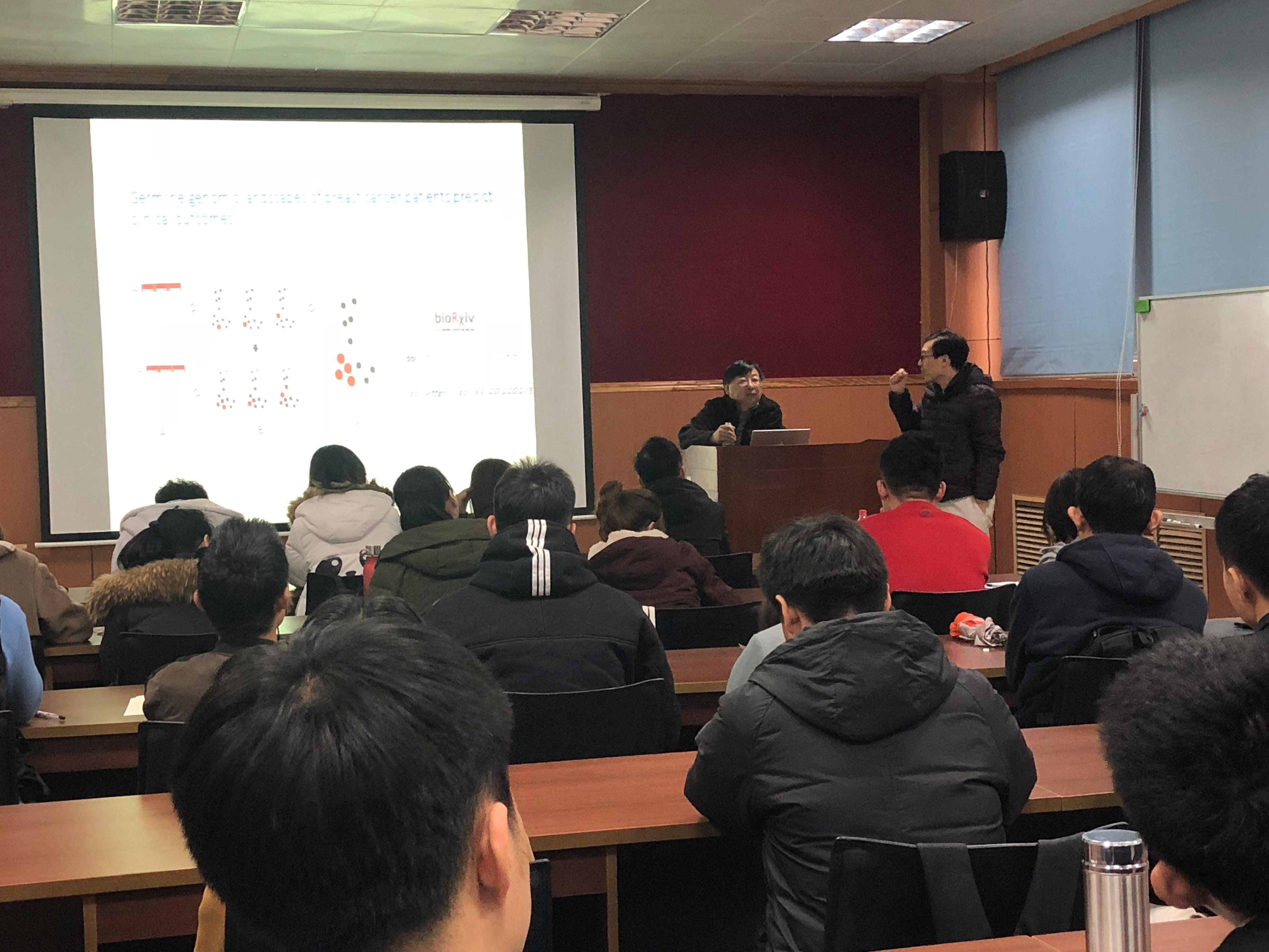 在讲座中,Edwin Wang教授重点介绍了团队在癌症生物信息学和肿瘤个性化医疗方面所做的研究工作,分享了在构建癌症特征网络计算框架和针对肿瘤用药靶点的预测算法上的成功经验。在讲座后的交流环节,与会师生就学术问题向王教授进行了请教并展开了热烈讨论。王教授为广大师生传递了以体外输送正常非缺陷NK细胞作为肿瘤治疗新思路的相关知识,让现场师生对肿瘤治疗有了全新的认识。