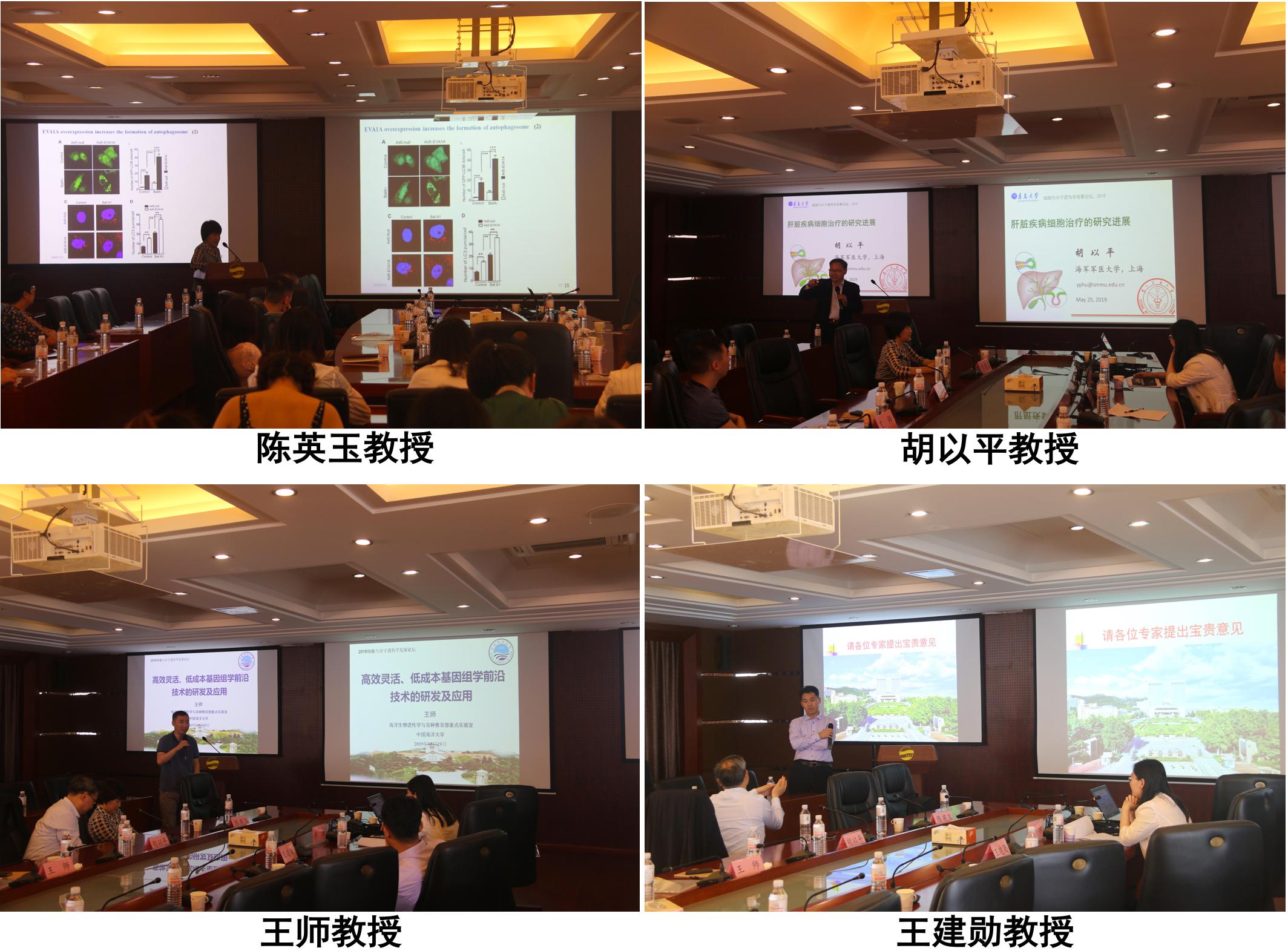 随后,各位特邀专家结合相关学科、技术的发展与应用为参会人员做了精彩纷呈的主题报告。陈英玉教授对其近年来在人类新的自噬相关分子的鉴定以及功能研究方面做的工作及取得的成果作了详细的报告;胡以平教授介绍了其开创性地运用细胞治疗的方式治疗肝脏疾病的研究历程;王师教授对其近年来研发及应用的高效、低成本基因组学前沿技术进行了详细的介绍;王建勋教授就其在非编码RNA与心血管疾病方面的研究作了精彩的报告。每位专家在各自报告结束后,耐心的解答了参会师生提出的疑问。专家们与学会委员进行了热烈的学术讨论,分享了各自研究领域的心得体会。
