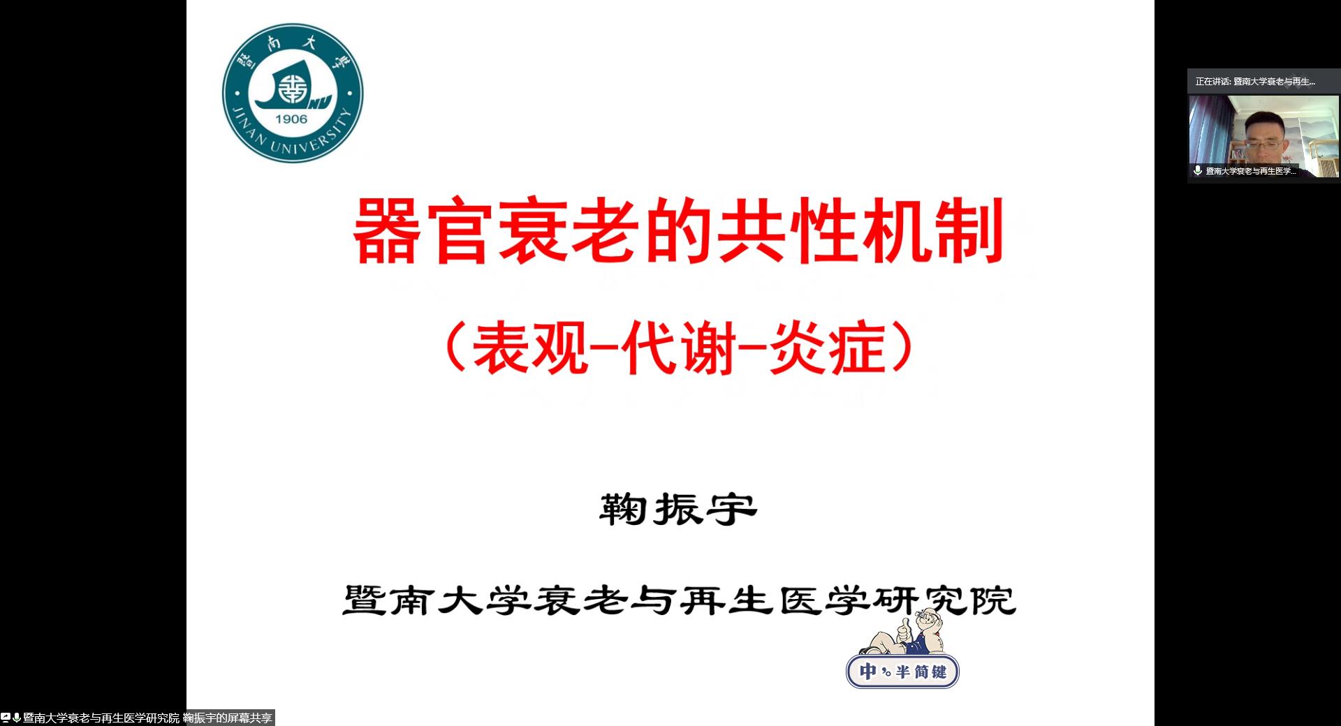 夏季高端学术论坛邀请,暨南大学衰老与再生医学研究院鞠振宇院长以线上会议的形式作了题为“器官衰老的共性机制”的学术报告。报告会由6686体育官网