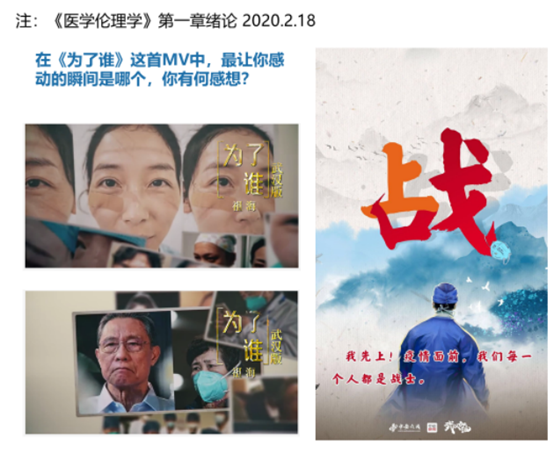 遵循这一共识,《医学伦理学》课程思政项目组的戚昕、韩晶、宋莉、周露玙、谭雪梅五位老师分别在自己的课程中引入抗击新冠肺炎的课程思政元素,按照时间的线索记录如下: