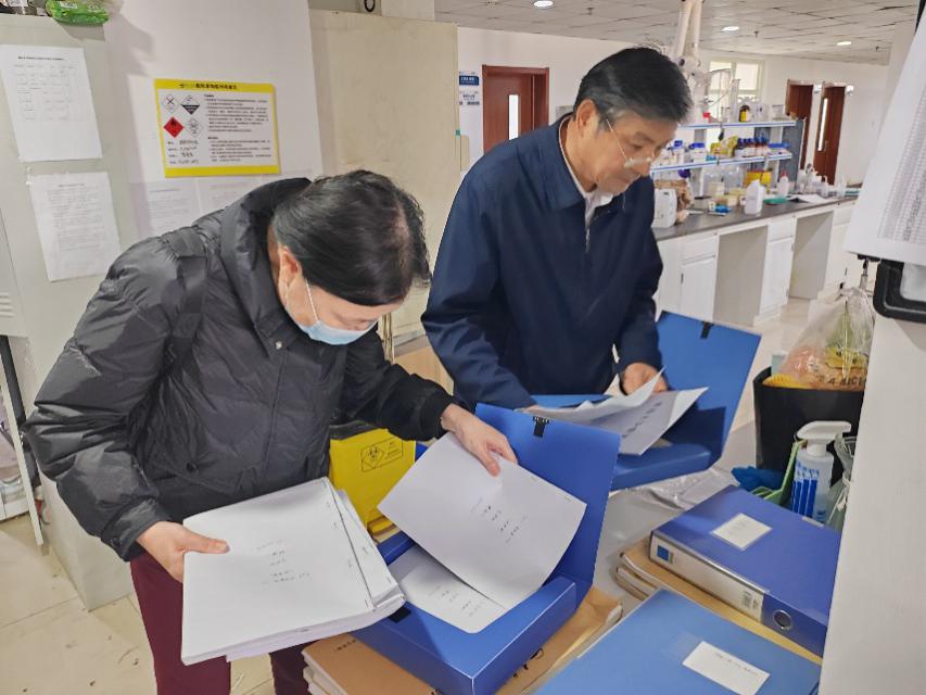 督学夏玉军教授、谷方教授和葛银林教授,教科办刘春艳,针对各教研室开展教学文档检查工作。