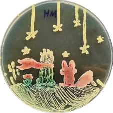 微观世界形形色色,微生物培养物的形态也千奇百怪,自然界微观也蕴藏着无限的美,一个培养皿以微生物为墨彩就能绘制成一个美轮美奂的微观世界。微生物平皿艺术由来已久,青霉素的发现者亚历山大·弗莱明也是培养皿艺术的早期创作者之一,已成为微生物学工作者和学生展示艺术细胞、才思和技巧的独特的放松与娱乐方式。