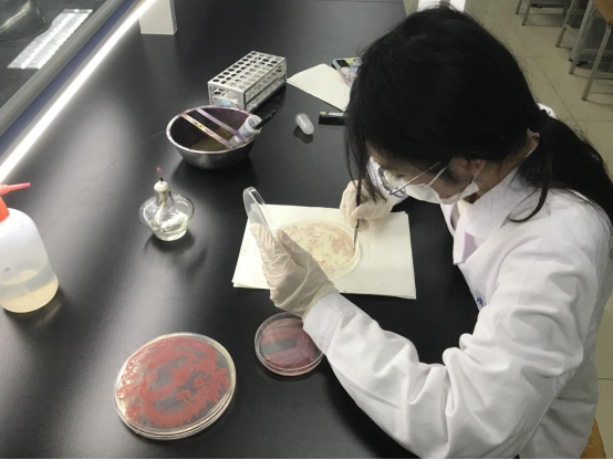 用性质稳定的颜料在宣纸上绘图也非易事,而用动态变化的微生物在柔软的培养基上作画就更加困难。本次是我院初次组织参加类似比赛,师生均缺乏经验,困难重重。为了抓住平皿上的那一抹美,同学们牺牲课余及节假日,边学习边创作,不断尝试不同菌株的培养条件,研究其色素、菌落特征,练习手法和技巧。病原生物学实验的闫志勇、吕锐老师在作品创作的一个多月时间里,每日都为同学们制备培养基、消毒实验室和器材、传菌种到深夜。