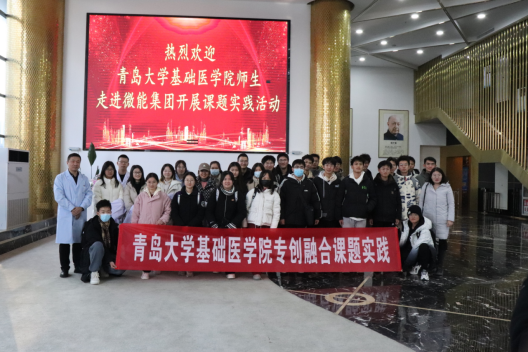 “医学细胞生物学”专创融合课程任课教师李霄霞副教授带领医学部临床医学专业2023级临床11班同学参观了位于青岛市即墨创智新区的干细胞企业——微能生命科技集团有限公司,开启了专创融合课题实践之旅。