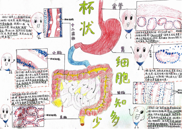 作品说明:消化系统由消化道和消化腺两部分组成。该绘图主要对肠、胃、肝的显微结构和胰腺进行详细展示,直观地展示帮助消化吸收的结构。通过对消化系统部分结构的微观展示,以及较为卡通形象的运用,提高公众尤其是孩童对消化系统的认识,了解消化系统的功能和结构,同时还能提高人们对消化方面疾病的关注。 |