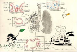 作品说明:正如汤姆·罗宾斯所言"没有健康的肺,就没有完全的生活。" 在这幅图中,左侧健康的肺部下是一个放着绿叶风筝的小女孩,象征着人与自然的和谐共生,绿色环保的大自然是健康肺的庇护所,是生命的源泉,是我们呼吸的净土。而不健康的肺部下则是被烟尘笼罩的城市,肺君在外菌的强攻下不堪重负,体内充满着浓烟,已然变得暗淡。让我们携手并肩,共同努力,为了我们的未来,为了我们的健康,让绿色生活成为我们的选择,让清新的空气永远环绕着我们! |