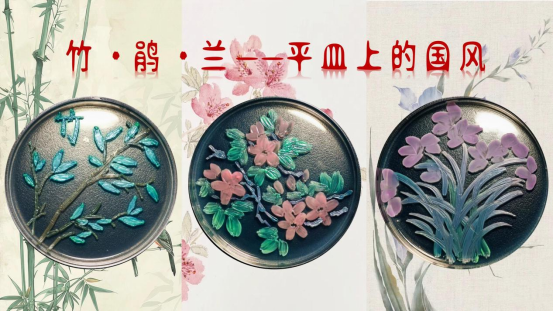 团体一等奖:《竹·鹃·兰--平皿上的国风》,笔墨丹青队(张嘉悦,张嘉朔)