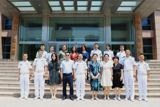 副院长(主持工作)张蓓,党委副书记章敏,院长助理狄国虎、陈豪等一行参观访问中国人民解放军海军第九七一医院,并签署医-校党建共建协议。