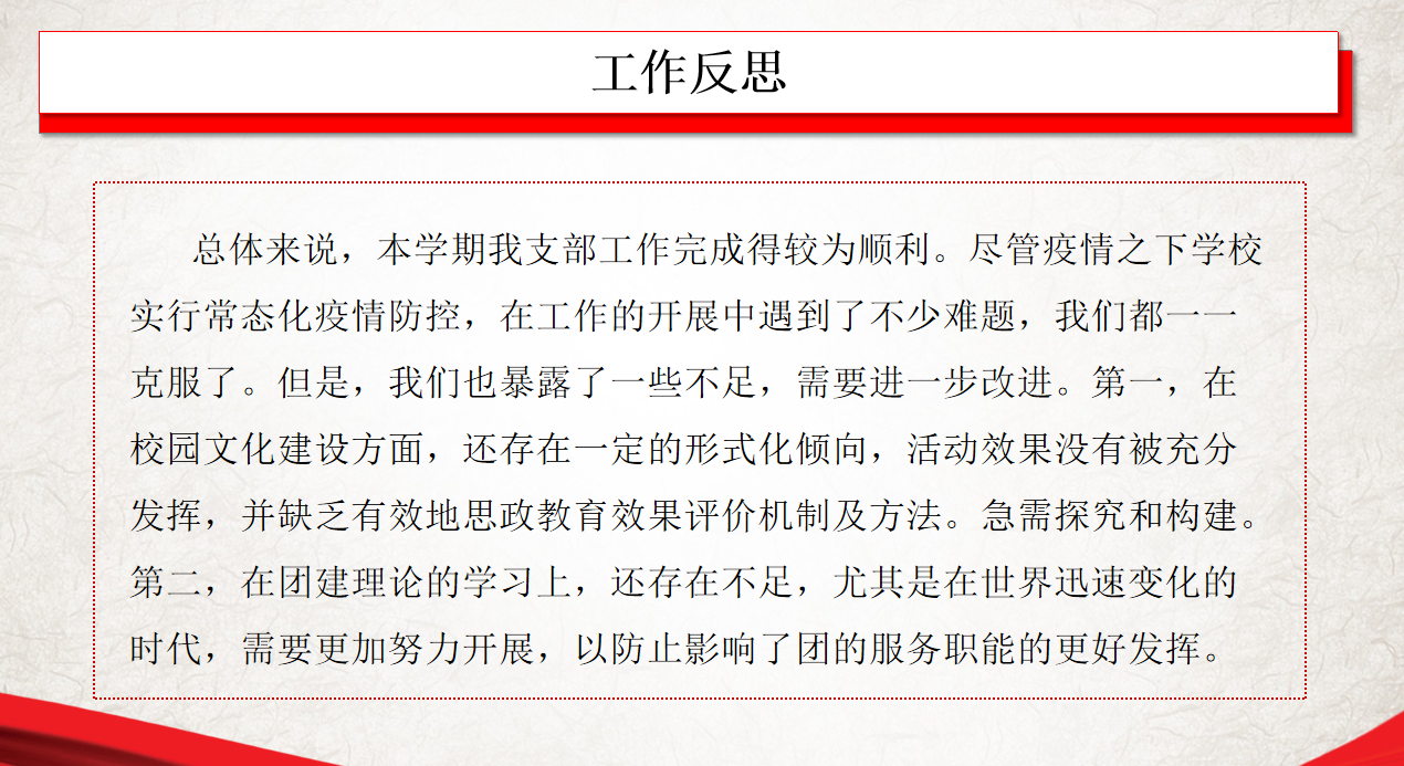 最后,章敏副书记指出本次活动旨在加强团支部组织建设,增强团支部凝聚力,夯实团支部组织基础,以进一步提升团支部建设工作和团学干部的工作能力。