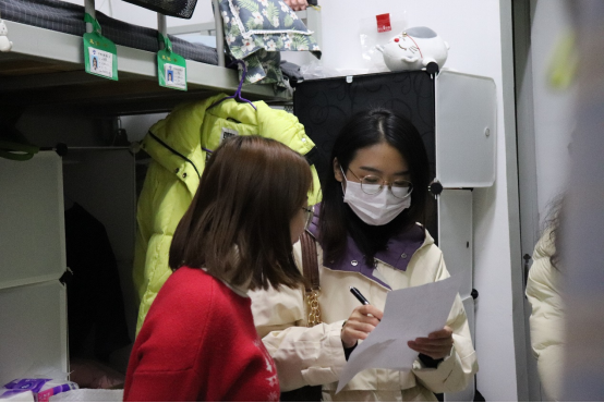 党委副书记章敏、辅导员李慧丽深入学生宿舍开展宿舍安全卫生大检查。