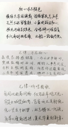 12月27日,我院面向广大青年团员开展红色诗歌摘抄活动。同学们通过摘抄自己喜欢的红色诗歌来铭记、缅怀和发扬革命先烈的奉献精神和艰苦奋斗作风,通过中国诗词不同发展阶段所呈现出来的特点,抒发家国情怀。《西江月·井冈山》、《初心永不褪色》、《听唱国歌》等诗词跃然呈现在同学们的笔尖,在摘抄经典中滋养心灵,汲取人生力量。