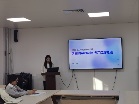 学生服务发展中心部门周慧从工作汇报和未来规划两部分进行述职汇报,同时,周慧对未来工作可能会存在的问题与大家进行了交流。