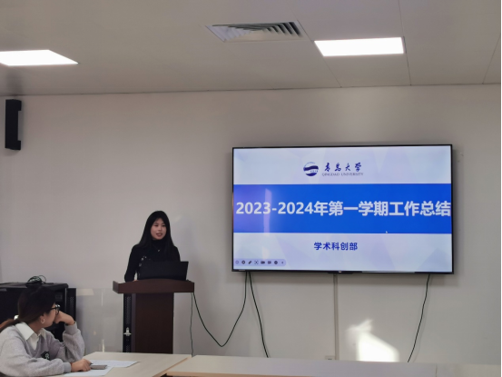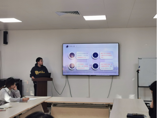 学术科创中心负责人李亚围绕着工作概述、工作总结、不足与反思、未来计划四个方面进行述职。学术科创中心组织举办多种多样的学术交流活动,来拓宽学生眼界,为同学们的科研之路提供支持。