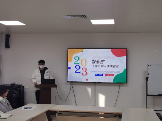 督察部门负责人修玉涛对其部门工作及未来规划进行了汇报,同时,李老师鼓励督察部接下来积极开展具有部门特色的活动。