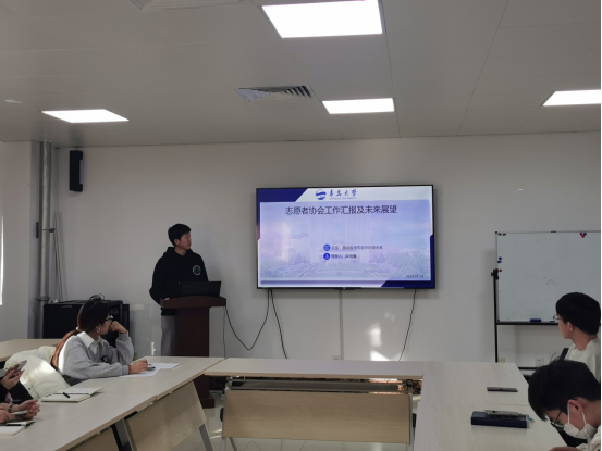志愿者协会负责人梁金鑫对部门的工作进行了总结,并规划未来预计开展活动,李老师对志愿者协会后续开展的活动给予了建议。